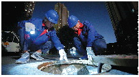 东泰热力维护人员在热力井内进行焊接工作。