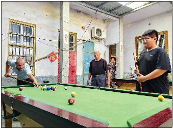 8月22日上午,姜李陈村一处农家院里欢声笑语。“今天得大战五局,五局三胜!”村民姜守领在这里碰到球友曾力新,刚一见面两人就定下对阵规则。台球桌前,两人一人一杆、有说有笑,玩得不亦乐乎。