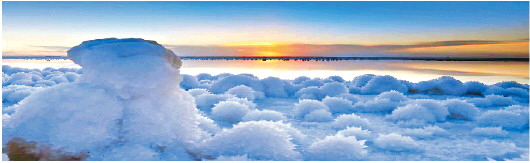 青海察尔汗盐湖的盐花奇观。