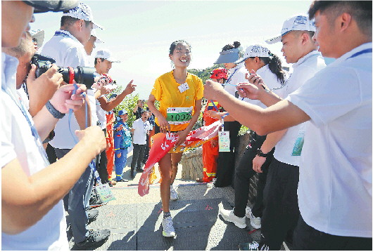 9月6日上午,2023第37届泰山登山比赛暨第28届全国全民健身登泰山徒步活动在泰安市林校操场鸣枪开赛。比赛设老、中、青三个组别,青年组终点为玉皇顶、中年组终点为南天门、老年组终点为中天门,总参赛人数约1万人。经过角逐,各组别冠军相继产生。其中,来自贵州的运动员蒙光富以1小时5分52秒的成绩夺得青年男子组冠军,青年女子组朱冰莹以1小时14分44秒的成绩冲线夺冠(上图)。 记者 薛小东 李增浩 郭健 王坤 报道 摄影 陈阳