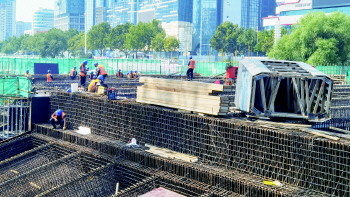 记者在施工现场看到,桥北面的钢筋浇筑工程已经基本完成,工人正在进行浇筑后的养护作业。桥南面则是聚集工人最多的地方,正在进行钢筋的铺设与加固作业;桥东的工人则正在对桥梁结构进行加固。