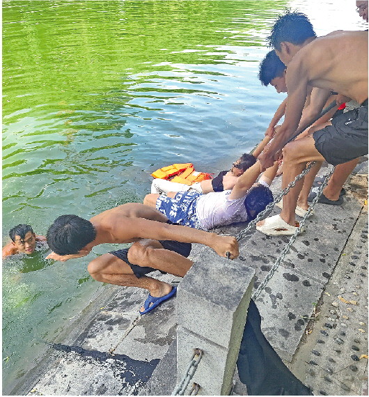 9月9日中午,聊城冠县职业教育中心学校龙舟队队员在清泉河完成日常训练正准备离开时,突然听到不远处有人喊“救命”。参加训练的9名龙舟运动员没有过多迟疑,飞快地循声赶往事发地点。“当时水里有两个人在挣扎,一个人只有额头露在水面上,另一个人已经淹没在水里。”面对险情,9名队员凭借训练经验团结协作,组成“人链”将落水的两人智救上岸。 记者 陶春燕 唐学钰 摄影报道