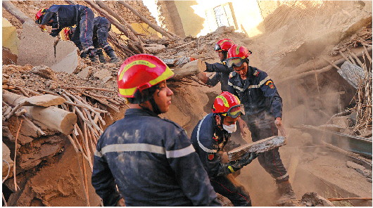 截至当地时间10日,摩洛哥强烈地震已致2100余人遇难、超过2400人受伤。救援人员当天加紧搜救幸存者,一些国家派遣救援队前往灾区支援。