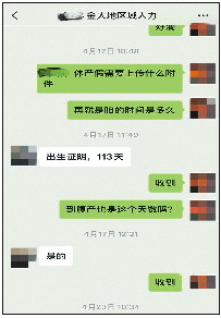 杨美告诉记者,她是青岛启德置业有限公司的一名策划经理,今年5月份生产,4月23日她提前向公司提交了休产假的申请。“当时问公司人力部门,被告知给的产假是113天。”杨美之前曾看到新闻报道,山东省出台了相关条例,女职工可享受158天的产假。对于公司只给113天产假,杨美心里有过疑问,但自认为作为公司员工要遵守公司制度,所以还是按113天提交了申请,请假时间从5月4日到8月25日。