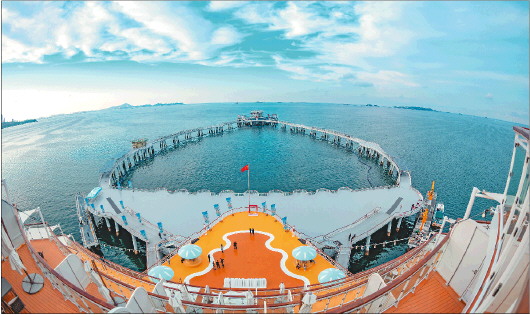 全国首个智能化大型生态海洋牧场综合体平台“耕海1号”。 扬子晚报 宋峤 摄