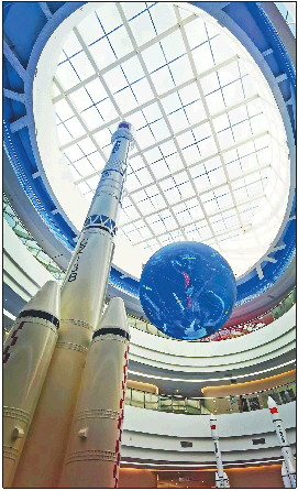 ◤海阳卫星数据产业园内矗立的火箭模型。