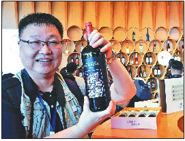 ◤融媒行记者展示产自蓬莱丘山谷的葡萄酒。