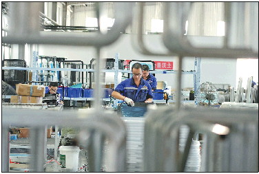 龙口市永安车窗有限公司车间内工人正在组装配件。 大连晚报 高强 摄