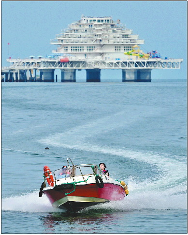 “耕海1号”前快艇游弋。 齐鲁晚报 刘军 摄