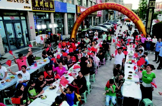 百家宴既是结交朋友的平台,还以餐桌为纽带,为左邻右舍居民提供一个矛盾化解的平台。当天,东涝台社区党总支书记、居委会主任张又月,特意将亲情园小区两户“濒临绝交”的居民安排在了一桌。看似有些不合时宜的操作,实则撺成了一场“和解局”。