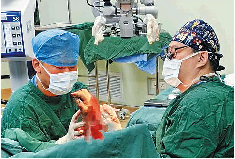 都说手足显微外科医生是格外辛苦的。他们在手术过程中并不单单是需要全部纯手工操作,相比于一般骨折只需将骨头复位固定即可,他们除了要修复骨头,还要吻合神经、血管,有时某些部位的组织不够了,还要从其他部位切取软组织进行创面覆盖。一般骨科手术可能几小时就可以结束,但他们有时一台手术下来就是一夜。