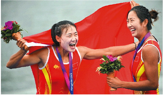 9月24日是杭州亚运会开幕式以来的第一个比赛日,当日上午的赛艇项目中,连同本届亚运会首金在内,中国队在富春江上狂揽6块金牌。其中,来自山东的两名女将鲁诗雨、刘晓鑫分别在女子双人双桨、女子四人单桨无舵手项目中夺魁,都拿到了个人首枚亚运会金牌。