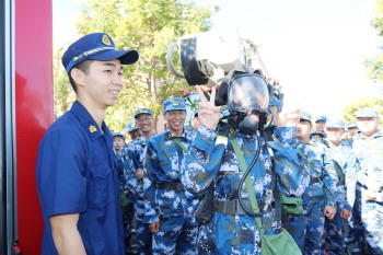9月14日上午,即墨区消防救援大队走进山东大学青岛校区开展“消防进军训”活动,为3000余名大一新生献上一份安全“开学礼”,守护平安开学季。
