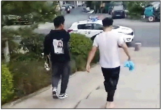 救人之后王恒(右)悄然离去。(视频截图)