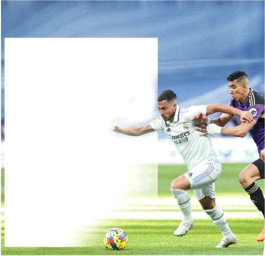 2023年4月2日,皇家马德里队球员阿扎尔(左)与巴拉多利德队球员亚米克拼抢。(资料片) 新华社发