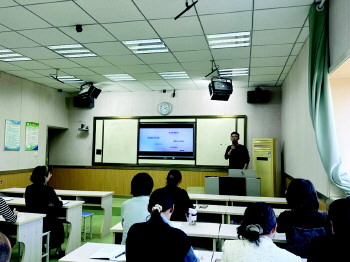 培训由光明小学教师于庆贺于进行,光明小学副校长吕建新、刘丽云及中层领导,各年级组教师代表参加。于老师通过理论讲解、优秀作品展示、手机实际操作等方面进行讲解,并带领老师现场制作本次活动主题视频。教师们认真记录,及时操作,与于庆贺互动,解决了视频制作中的难题,最终完成视频作品,收获颇多。