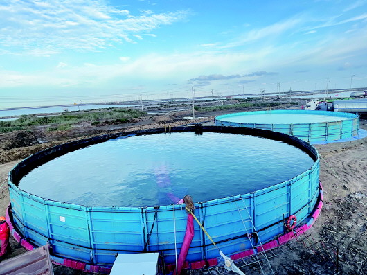 供水分公司仅用3天就建成两个高2.5米、直径约20米、储量各1000立方米的软体罐,确保开发单位重点井压裂压驱用水。 通讯员 宋卫东 摄