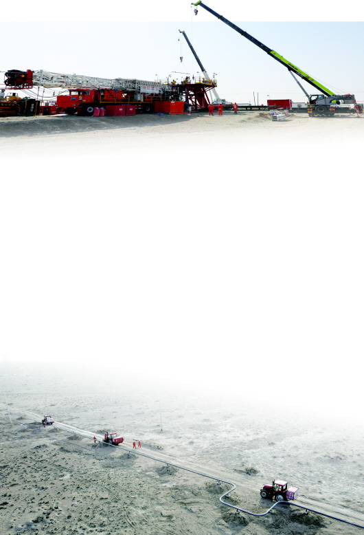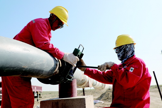 在阿拉德油田,施工人员正加快铺设线缆,为新井投产做好准备。