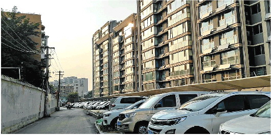 小图:中海·汇德里的空车位只卖不租。 大图:没买车位的业主和租户无奈将车停在小区外,带来一定安全隐患。