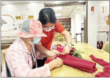 在居家社区养老模式下,老人白天到社区的日间照料中心做手工。