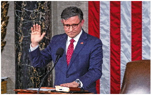 ◥25日,新当选的众议院议长约翰逊宣誓就职。