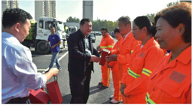 向环卫工人致以节日祝福,并送上慰问品。