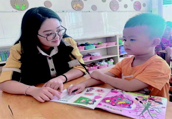推广普通话 为进一步提高教师语言文字的表达能力和规范运用的能力,近日,沂源县振兴路幼儿园开展了普通话培训活动,推广普通话应用。 (王慧)