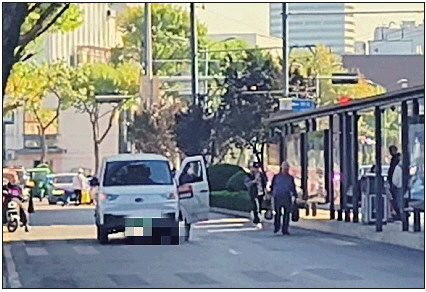 在泺源大街辅路,一名司机随意将车停在路中间开门下车。