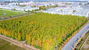 在太白湖景区里,绿意还未褪尽,就已被金黄渲染,柔和的阳光穿过梧桐的枝叶,洒下一片温暖。层林尽染,落叶纷飞。驻足湖畔,一派江南园林景观映入眼帘,蜿蜒的回廊、古朴的石桥、静谧的歇亭、典雅的水榭……平添了一种别样的韵味。徜徉在新区的街路上,树木逐渐穿上多彩的“衣裳”,色彩缤纷,呈现出别样风情。得益于新区高质量的“彩化”,如今赏叶不必跑远,身边就有打卡地。济安桥路美国红枫、农场路金叶复叶槭,运河路白蜡、芒草,天立学校门口金枝槐,圣贤路银杏,长兴路五角枫、三角枫……这些斑斓的叶色,正等着你的偶遇。
