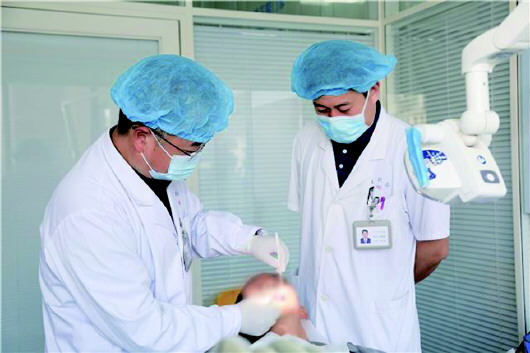 在王昇志的指挥下,手术有条不紊地进行着。两个小时后,手术顺利完成。“颌骨囊肿在口腔科是一种很常见的病,专科手术的难度也是中等偏下的。”王昇志说,“即刻种植即刻修复术需要外科医生、修复科医师及口腔技师三方合作。一方面是以修复为导向的‘术前种植设计’,一方面是术中微创、精准化的种植体植入,还有就是需要经验丰富的技师现场制作临时义齿。”