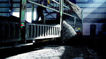 工人正在卸煤。