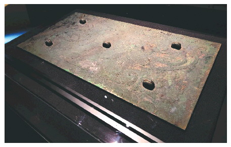 这面铜镜形体巨大。从目前所见的历史著述和出土资料来看,是迄今为止我国出土的面积最大、最重的铜镜,堪称“中华第一铜镜”。在我国的出土铜镜中,圆形铜镜数量最多,方形铜镜数量较少,而矩形铜镜更是少之又少,这面铜镜实属铜镜中的珍品。铜镜背面的龙纹图案,龙身蜷曲,张嘴吐舌,栩栩如生,线条自然流畅,极为生动活泼。龙纹是战国中晚期到西汉早期的流行纹饰,此镜对龙形纹饰进行了改造,并将龙纹适度拉长,与长方形镜体相得益彰,可谓匠心独运,反映了当时高超的艺术水平。