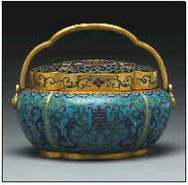清代掐丝珐琅海棠式手炉。