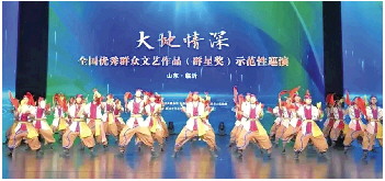 11月5日,全国优秀群众文艺作品(群星奖)示范性巡演活动在临沂大剧院举行,商河原创非遗舞蹈类作品《大河之声》受邀参加(下图)。