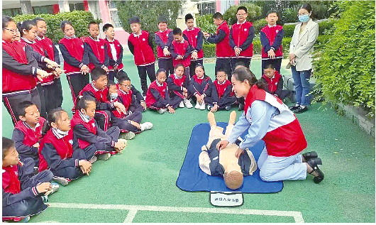 ◥志愿者进校园进行主题宣讲,促进青少年儿童健康成长。