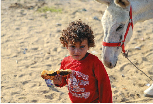这是11月13日在加沙地带南部城市汗尤尼斯一个临时难民营拍摄的巴勒斯坦儿童。 新华社发