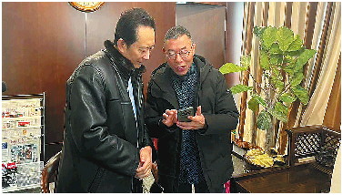 11月15日,在林宇辉模拟画像工作室,雷公将锦旗送给“神笔警探”林宇辉。