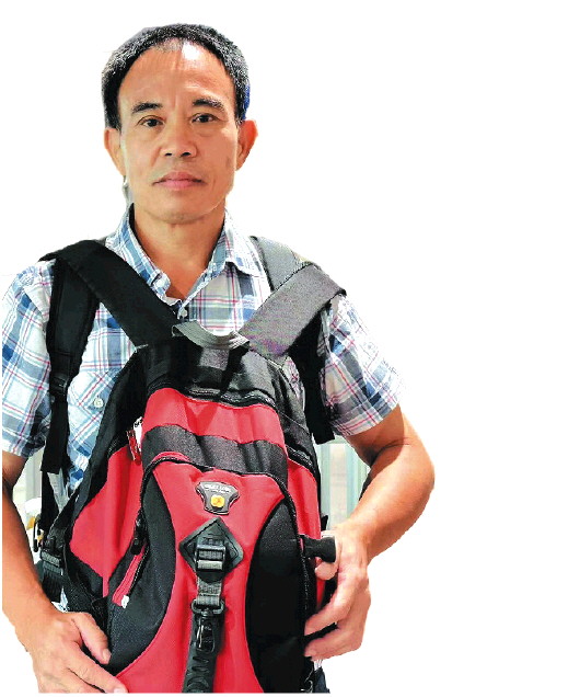 这个红色的背包花了100多元钱,对于刘德文来说,它承载的分量却是无法衡量的。背包的带子断了几次,妻子缝缝补补,他还是继续用。