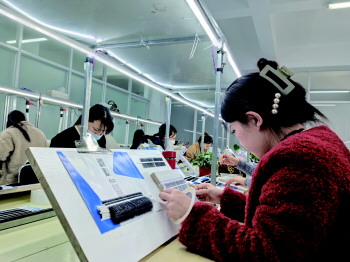 “首先清理卡毛机里的杂毛,把双面胶粘贴到钢尺上,前后摇晃三下,快速提起放在刻度尺上……”11月15日下午,一场睫毛手工活培训会在曲阜市鲁城街道阙里社区乐业小筑就业服务站举行,来培训的大多是30岁上下的“宝妈”。