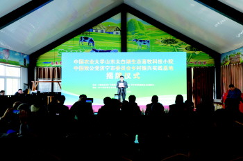 本报济宁11月20日讯(记者 丁安顺) 11月19日,中国农业大学山东太白湖生态畜牧科技小院暨致公党济宁市委员会“乡村振兴实践基地”在济宁市丙坤生态牧场揭牌。