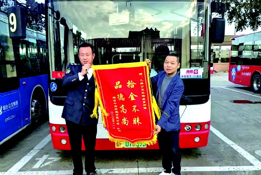近日,“双11”购物热潮过后,快递行业迎来了送货高峰期。记者从烟台公交集团获悉,13日,一位忙着送货的快递员小哥不小心将6件快递包裹掉落在通世南路,恰好被上班途中的莱山区公司9路驾驶员杨成彦捡到,经多方查询,杨成彦最终找到了该快递公司的快递员,并将包裹返还给了对方。14日早晨,快递小哥带着锦旗来到东陌堂场站表示感谢。 记者 于洋 通讯员 王柯然 摄影报道