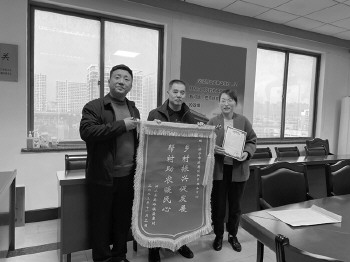 本报济宁11月23日讯(通讯员 蔚海荣) 11月15日,泗水县高峪镇盛康村驻村工作队代表将“乡村振兴促发展,帮衬助农暖民心”锦旗和感谢信送到济宁市政府投融资服务中心,对中心及派驻第一书记王衍亮两年来的支持配合和辛苦付出表达诚挚的谢意。