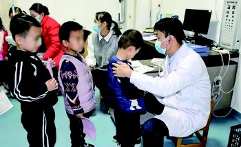 医务人员为儿童进行健康体检。