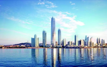 海天大酒店改造项目位于青岛市市南区浮山湾畔,由三栋超高塔楼、两座裙房和六层地下室组成,总建筑面积49.4万平方米,建筑高度369米。海天中心由青岛国信集团投资建设并运营,目前,海天中心作为“山东省新旧动能转换重大项目库第一批优选项目”和“青岛市重点项目”,已成为山东省“双招双引”的重要载体。