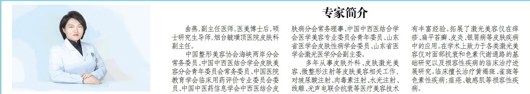 曲燕,副主任医师,医美博士后,硕士研