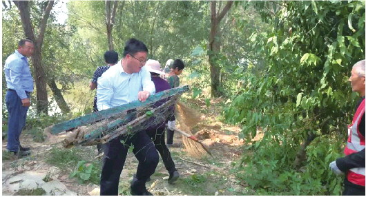 街道领导干部带头干,开展农村人居环境整治。