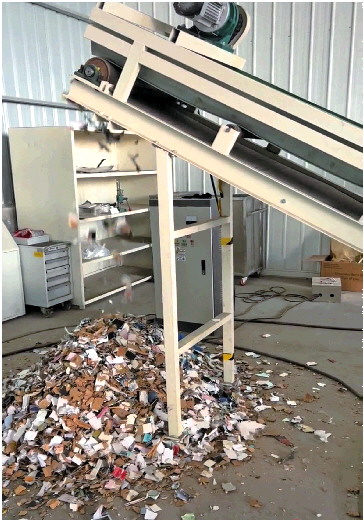 客户可以通过视频或者监控探头实时观看销毁过程,但也有客户选择现场观看。那是一位来自廊坊的女士。离得近,她自己驾车,将婚纱照送到了销毁处置中心。在刘玮看来,这位女士已经释然。从箱子往外拿婚纱照时,她偶尔讲一下拍这张照片时的情况。看到婚纱照变成碎片,她也拿出手机拍了下来。
