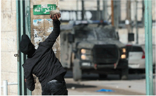12月12日,在约旦河西岸城市杰宁,一名巴勒斯坦人向以色列军车投掷石块。 新华社发