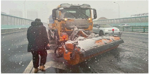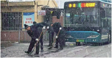 城管部门闻雪而动,上路清扫积雪。本版照片 记者 王鑫 王媛 周青先 于泊升 史安琪 摄