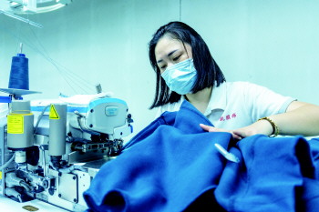 耿静务工的地方是兖州希凯服饰有限公司坐落于泗庄社区内的生产车间。近2000平方米的生产车间里,近千台缝制设备和一堆原料布匹、成品服装码放得整整齐齐。